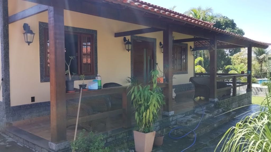 Sítio em Guapimirim, Vale das Pedrinhas, área de 5.000, Casa sede com três dormitórios, sala, cozinha, área de serviço com lavanderia, roll, varanda em L, garagem para dois carros, área gourmet com churrasqueira e forno a lenha, com dois banheiros, Piscina de adulto e de criança, duas suítes, uma capelinha, um dormitório em separados, diversas frutíferas.